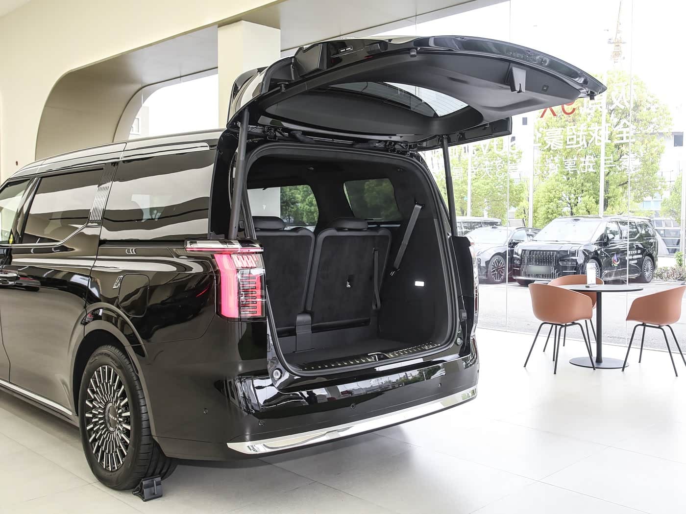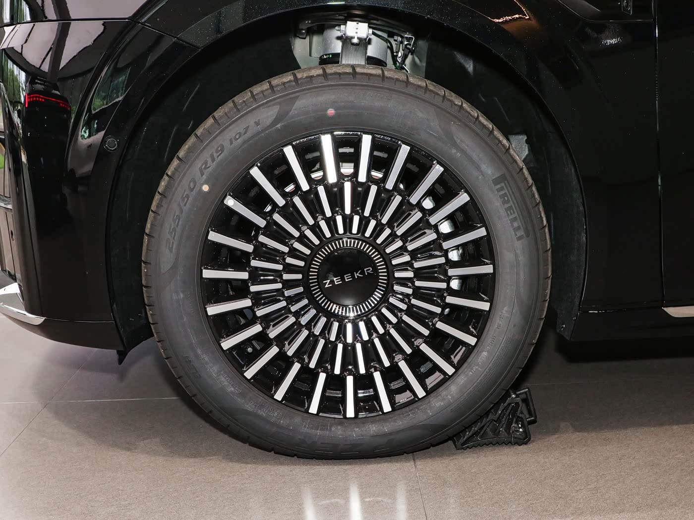 За розмірами новачок поступається головним конкурентам, але це все одно дуже великий автомобіль: довжина – 5209 мм, ширина – 2024 мм, висота – 1856 мм. Зате колісна база у “дев’ятки” найдовша: 3205 мм. В основі лежить електромобільна платформа SEA (Sustainable Experience Architecture), розроблена компанією Geely: мінівен має пневматичну підвіску з подвійними поперечними важелями спереду і ззаду багатоважеля. Штатні колеса – 19-дюймові.