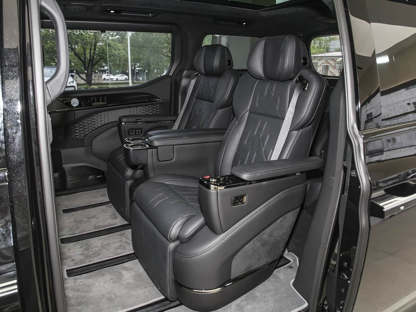 У передній частині салону – мінімум кнопок, віртуальні прилади, проекційний екран та великий дисплей медіасистеми. Куди цікавіше задній відсік. Zeekr 009 представлений у шестимісній версії, у якої роздільні крісла встановлені не лише на другому, а й на третьому ряду. «Галерка», звичайно, обладнана скромніше за середній ряд, але розробники запевняють, що навіть дорослі сідоки тут розмістяться з комфортом.