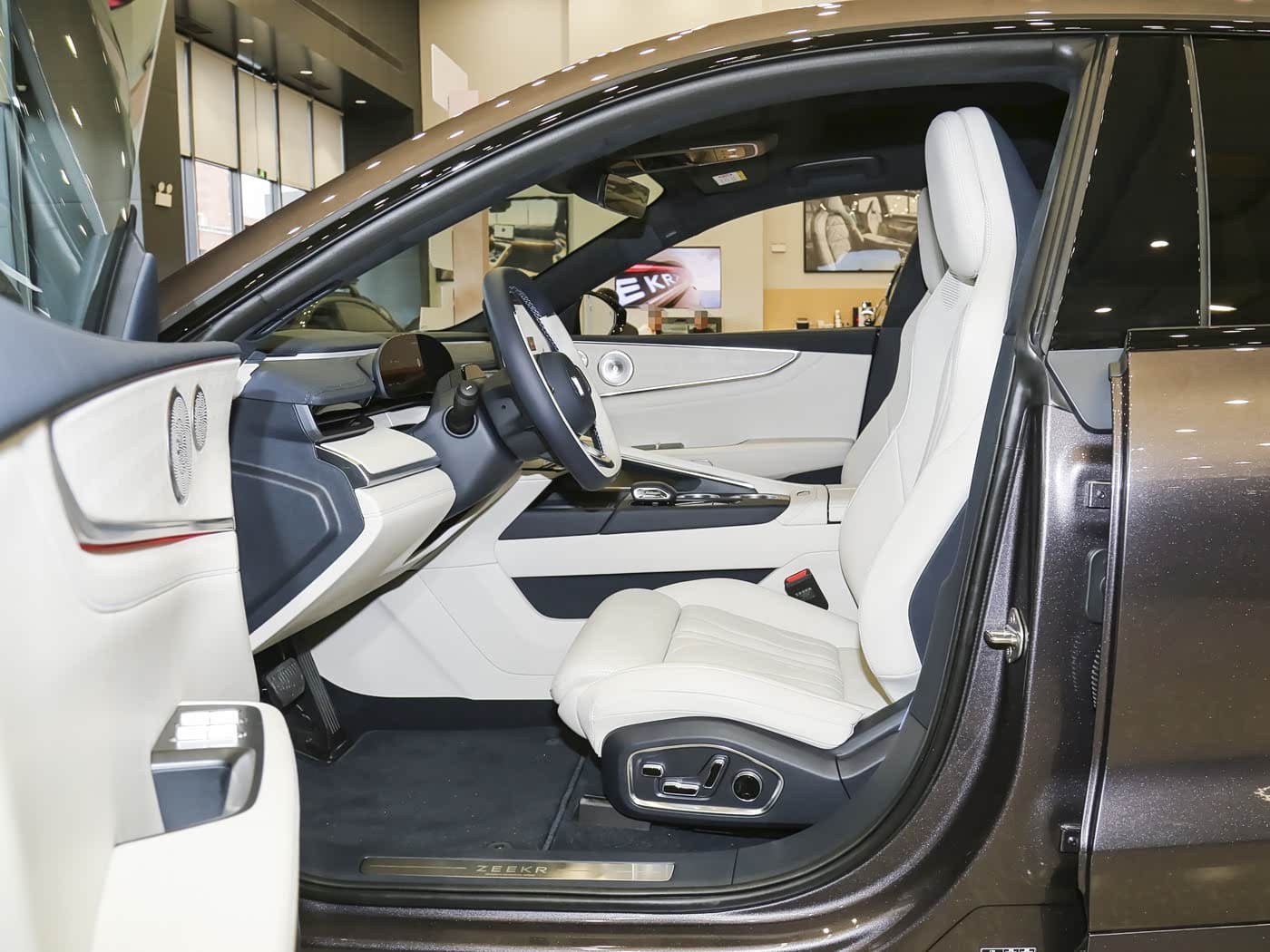 Это первая модель нового суббренда холдинга Geely, предназначенного для самых дорогих электромобилей премиум-сегмента. И оказалось, что это заявление следует рассматривать не только по меркам китайского рынка. Первые две буквы названия Zeekr образованы от слов «zero emission» («нулевой выброс»), в третьей букве зашифровано послание Electric-Evolution-Era, а окончание «kr» — обозначение криптона, благородного газа без цвета, вкуса и запаха, название которого с греческого переводится как «скрытый» или «секретный». Уже создано отдельное подразделение Zeekr Smart Technology Co., а выпускать модели Zeekr будут на главном предприятии Ханчжоу, где находится штаб-квартира холдинга Geely. Zeekr 001 – это серийная версия прошлогоднего концепт-кара Lynk&Co Zero, причем автомобиль почти не изменился. Сохранен и характерен дизайн, присущий моделям Lynk&Co, а также безрамочные двери с выдвижными ручками. Это большой лифтбек с хорошими пропорциями, длинной колесной базой (3005 мм), колесами диаметром 22 дюйма и низким коэффициентом аэродинамического сопротивления Cx (0,23). Длина машины – 4970 мм, ширина – 1999 мм, высота – 1560 мм. Со сложенными задними сиденьями образуется багажный отсек объемом 2144 литра. Небольшой багажник есть и спереди, но в него поместится разве что зарядное наружное устройство с кабелем. Интерьер имеет богатую отделку – здесь уже «в базе» кожа наппа, мягкий пластик и мультиконтурные передние кресла с массажером. Zeekr 001 обладает компактным приборным экраном (8,8 дюйма) и большим телевизором медиасистемы диагональю 15,4 дюйма (в нем сосредоточено управление всеми второстепенными функциями), а также проекционный дисплей.